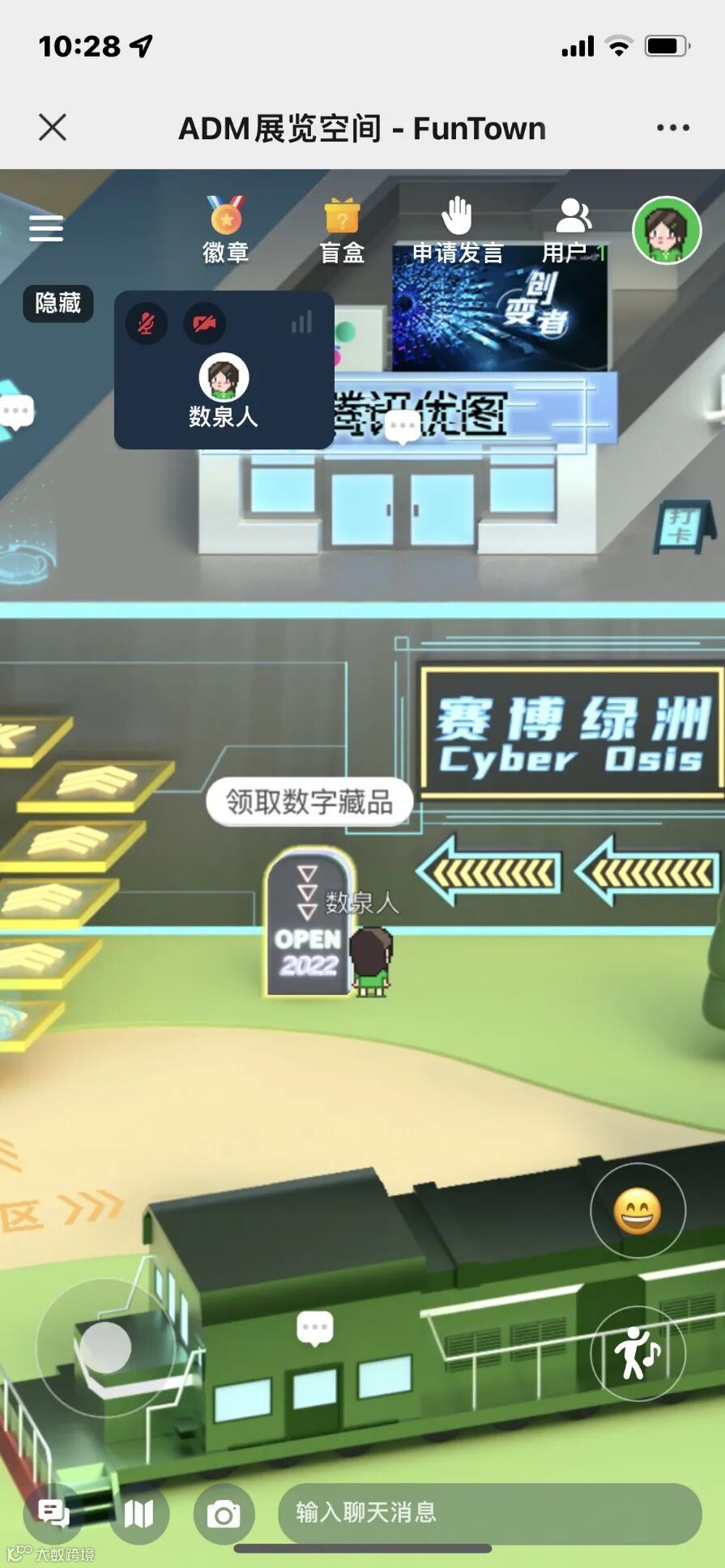 用户在ADM元宇宙赛博绿洲绿皮火车处,在OPEN2022或绿皮火车头登录门口,或者托尔山脉的大烟囱、房子门口、山脚下视频墙等(须移动至正前方),均会弹出“领取数字藏品”,点击即可直接跳转至数泉数字文创产品购买链接,藏品包括ADM十周年纪念门票、敦煌飞天少女系列。