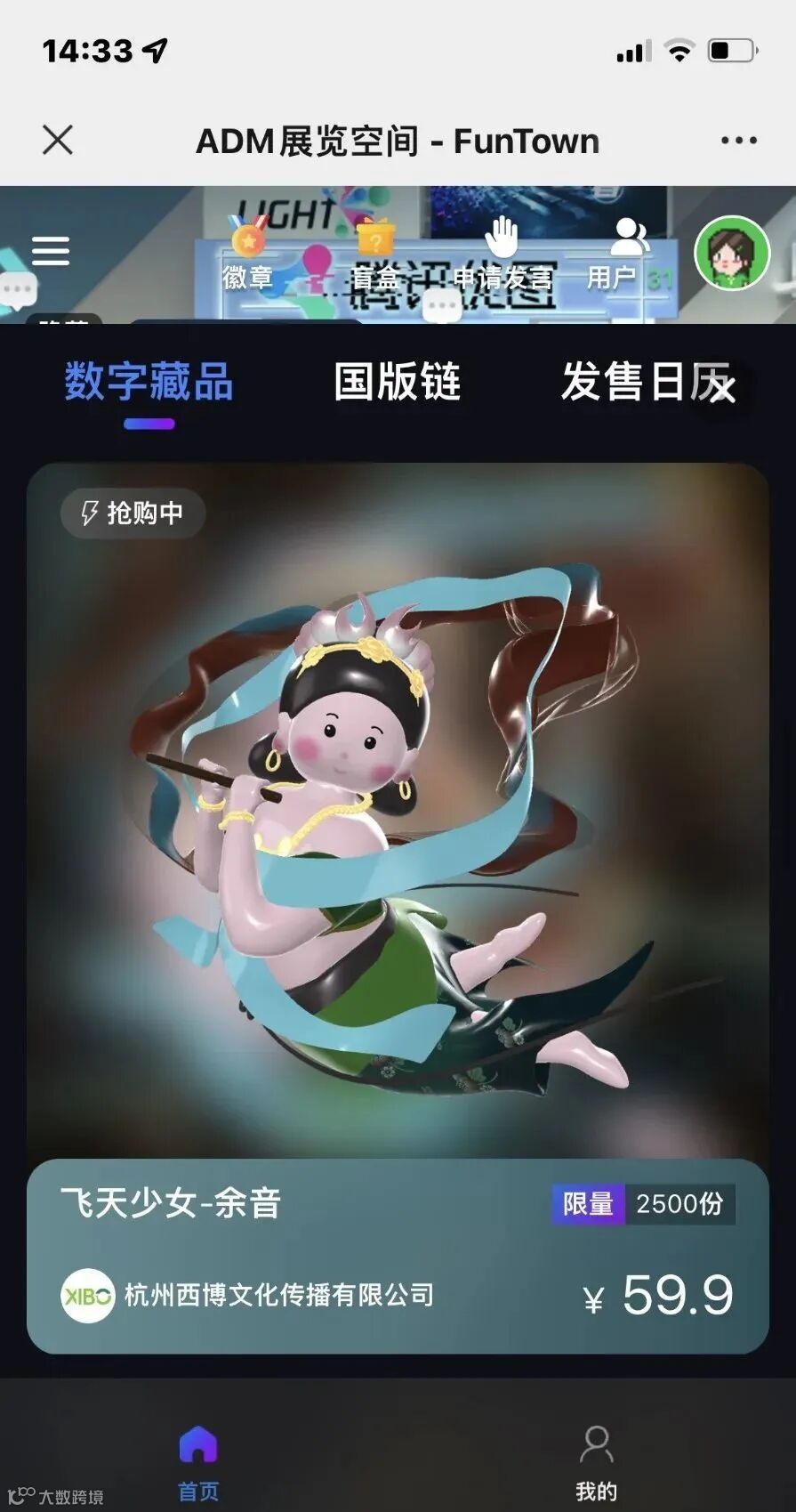 进入ADM展览空间,滑动屏幕走动,找到“领取数字藏品”入口
