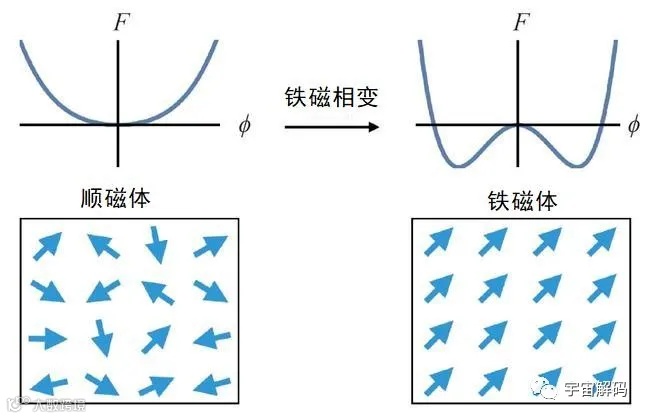 如果温度过高,交换作用就无法和热运动抗衡,磁畴内部的原子也会无序排列,磁畴也因此解体,铁磁体就会变成顺磁体,这就是铁磁相变。