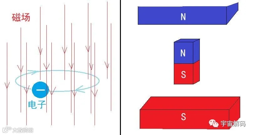 电子做圆周运动就相当于一个小磁铁,主要会产生与外部磁场方向相反的磁场,此时的电子就会被外部磁场排斥。