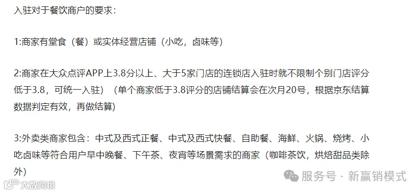 京东外卖规定白名单以外的真实品质堂食餐厅要求: