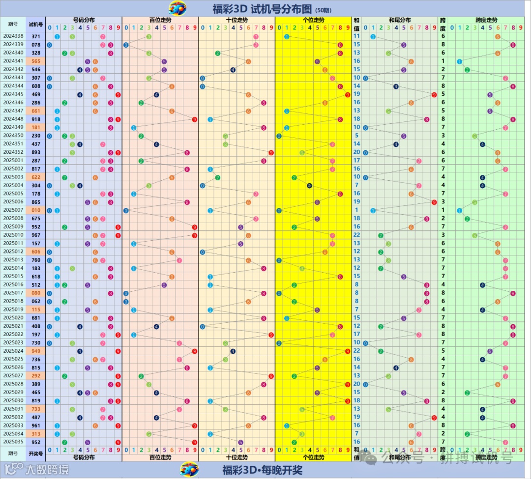 福彩3D试机号走势分布图(更新至2025035期)