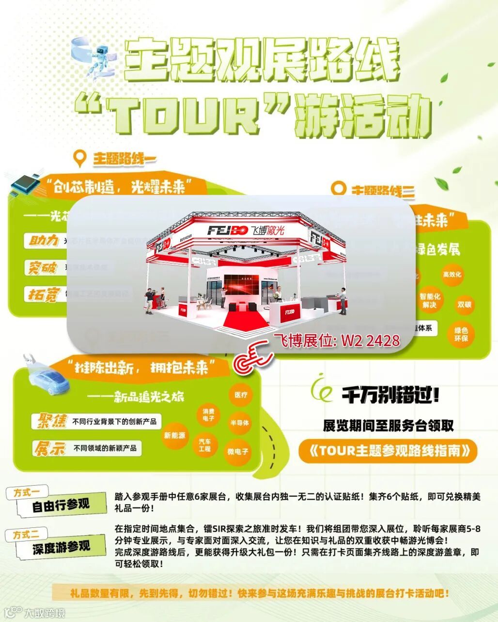 “推陈出新,拥抱未来”——新品追光之旅主题观展路线来啦, 欢迎来到飞博展台W2-2428打卡, 现场还有新品宣讲,更有精美好礼送不停~