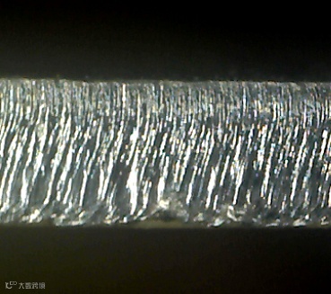 绝缘层烧蚀小 绝缘层的主体材料是有机树脂,熔点较低,对热量较敏感。准连续激光切割时采用脉冲输出,切割的热影响小,因此绝缘层的烧蚀区也小。