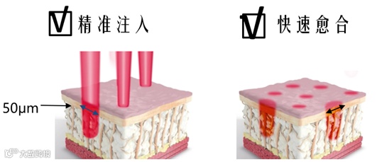 激活真皮层新生大量胶原蛋白和弹力蛋白,促进皮肤的胶原组织和弹力纤维重新排列并恢复弹性,从而达到水嫩肌肤、减轻皱纹、缩小毛孔、淡化疤痕、提升肤质的效果。
