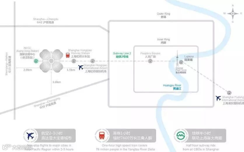 4、上海体育馆:111路公交终点站上下客点,直达上海体育馆公交枢纽,连接1、3、4号线。国家会展中心内部接驳巴士上下客点设在北厅外指定区域。
