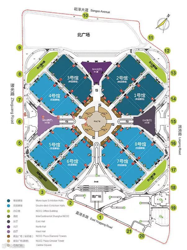 2、从长三角:杭州、宁波、苏州方向客流可分别G60、G2等高速汇集至G15 沈海高速-崧泽大道下匝道-崧泽大道(国家会展中心北门)-北展场指定位置停车,或崧泽大道-诸光路-盈港东路-2号停车场(盈港东路北侧靠近诸光路)。
