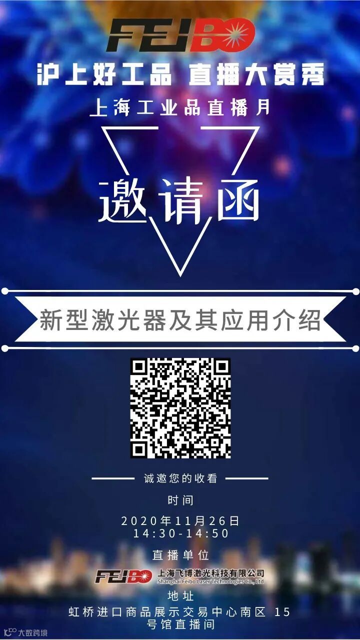 飞博激光直播时间为11月26日(周四)14:30,主题为“新型光纤激光器产品及其应用介绍”,扫描下方二维码,准时收看!欢迎扩散!