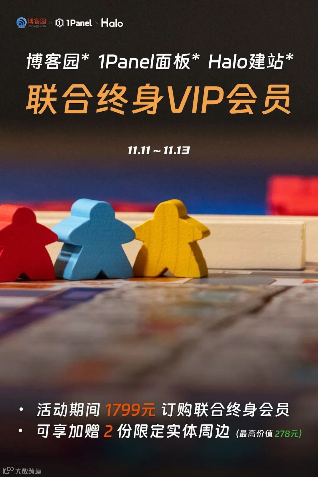 如果您在 11.11-11.13 期间 购买「博客园 + 1Panel + Halo」联合终身VIP会员,会额外赠送博客园周边与凌霞软件周边各1件。