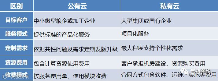 粮企云产品对公有云和私有云都提供支持,对部署在大型粮食集团私有云上的产品,产品可以最大程度的支持需求的定制化,对于体量较小的粮企、中小微型粮库优先推荐直接购买粮企云的服务,降低投入。