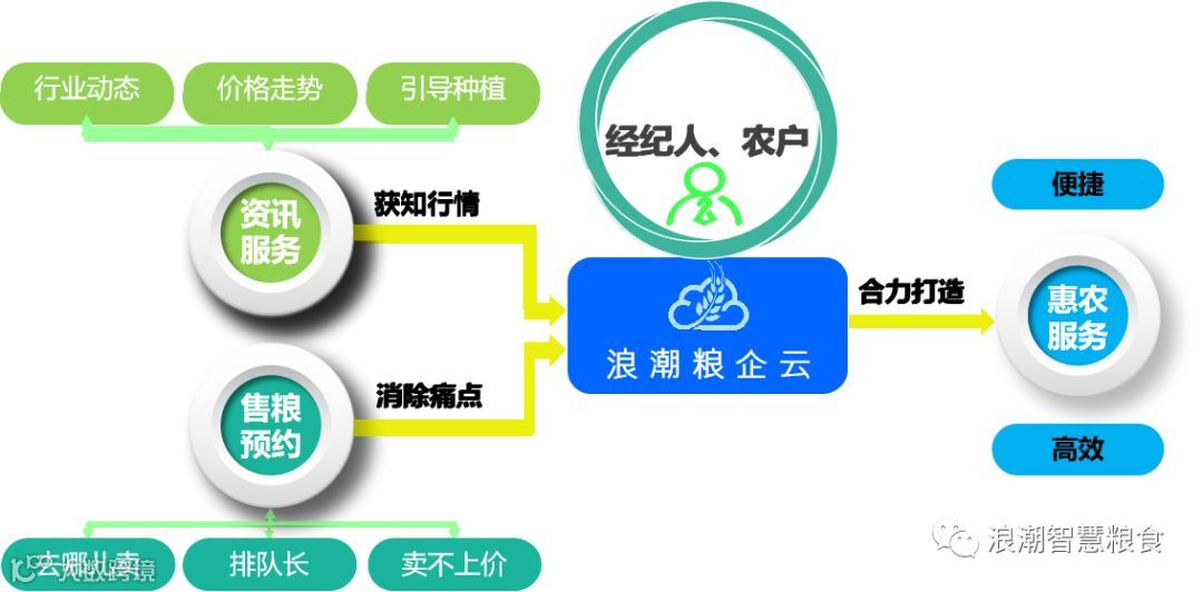 浪潮粮企云的“资讯服务”为农户、经纪人提供每日快讯、价格走势、行业动态、知识论坛、农技指导等功能,通过资讯服务引导种植并帮助解决售粮、种植过程中的常见问题。