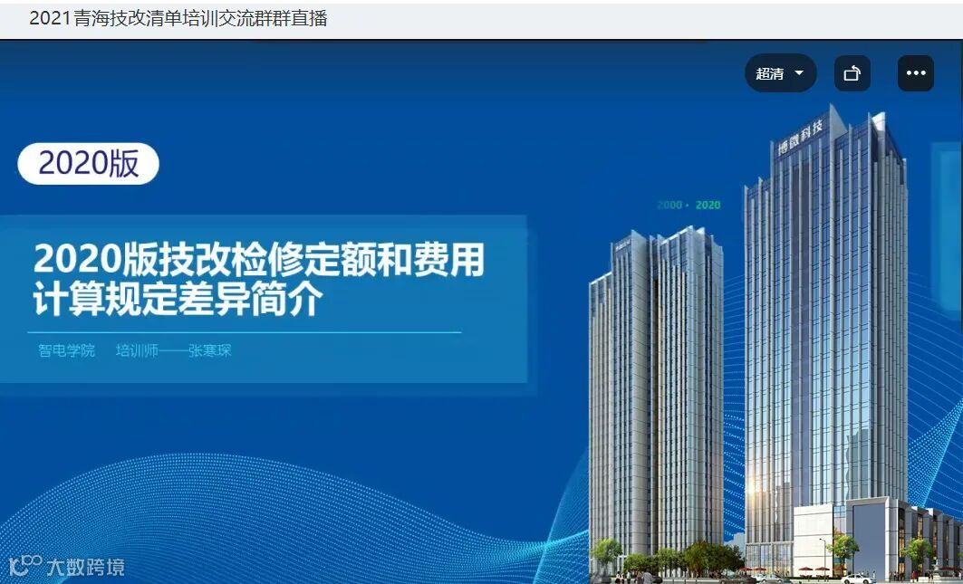 直播培训在国网青海省电力公司经济技术研究院技经中心田海丰主任的主持下召开,博微公司的高级培训讲师围绕电网技术改造及检修工程定额和费用计算规定(2020年版)内容、新旧版技改检修规范主要变化进行详细解读,并就新技改检修软件的实操应用进行线上演示,旨在帮助参训学员快速掌握规范内容以及软件操作技巧,提升工作管理及应用效率。参训人员在课程中仔细聆听,积极互动,活动氛围活跃,学员们收获颇丰。