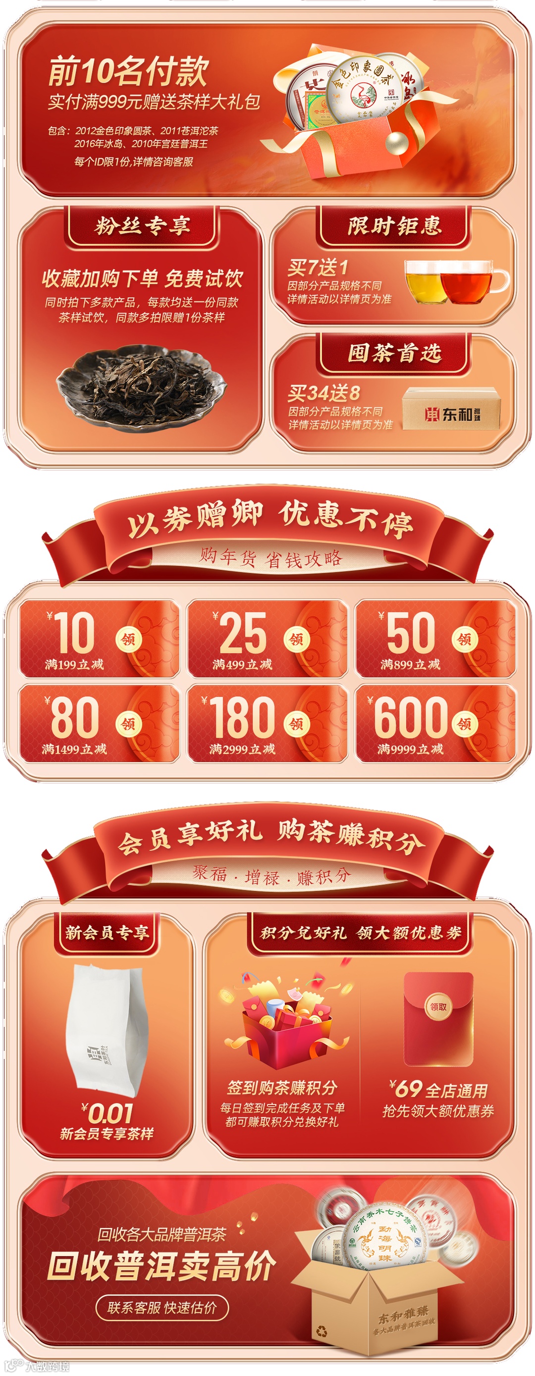 活动期间,全场每满200元减20元,还有各大知名茶叶品牌的好茶合集大礼包、限时优惠券等等多重豪礼!