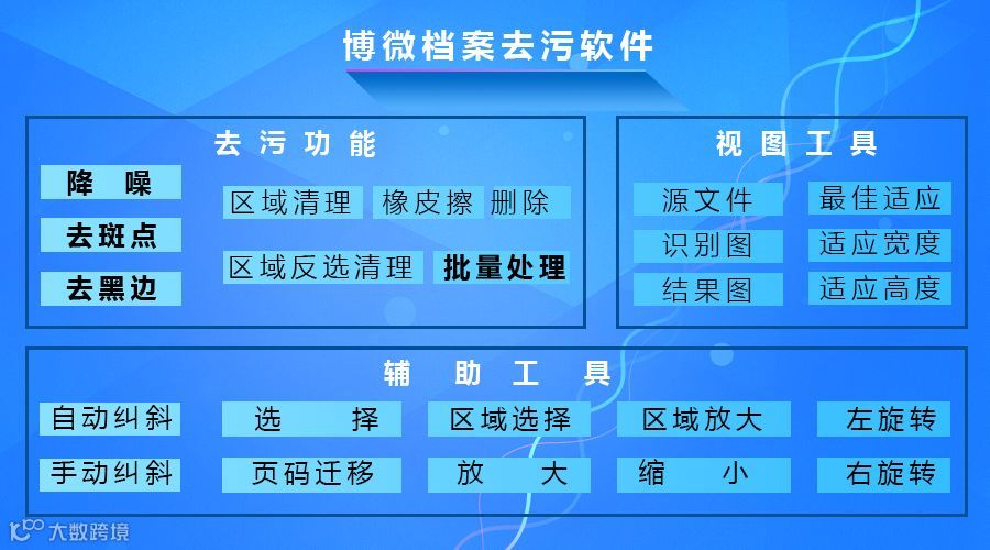 降噪、去斑点、去黑边功能可自动智能识别去污处理,手动使用区域清理、橡皮擦等辅助功能,可达到1+1>2的最佳处理效果。