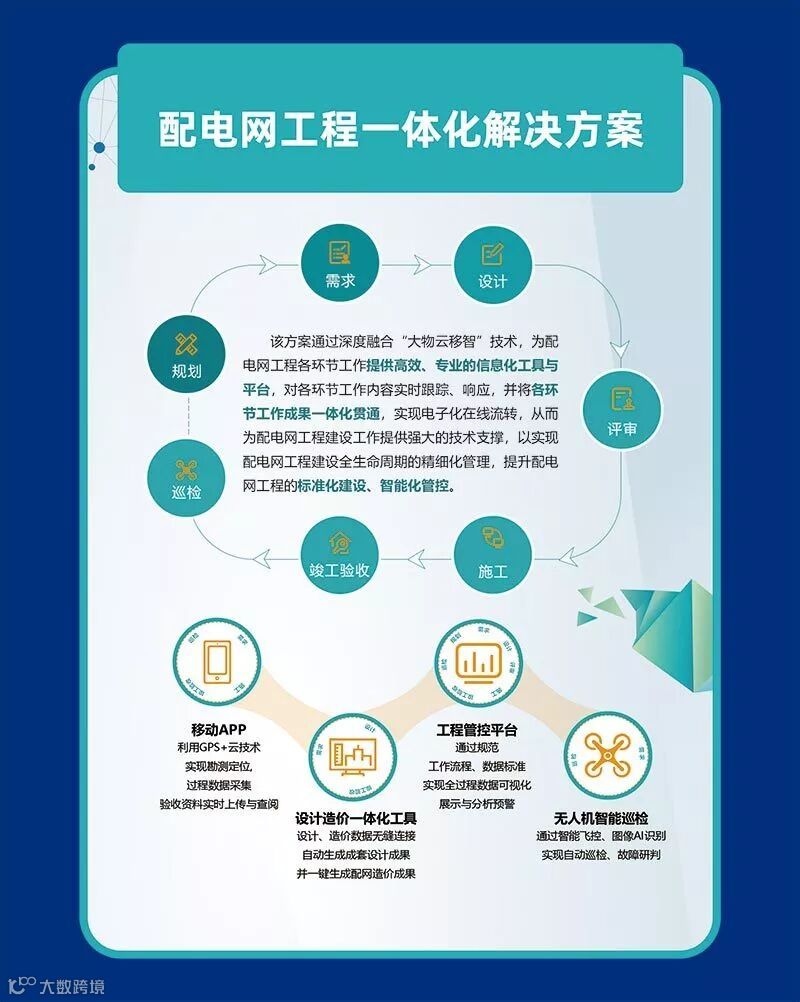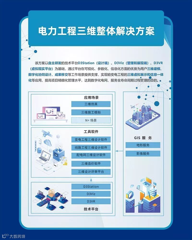 电力工程三维整体解决方案、配电网工程一体化解决方案、易数大数据可视化分析平台、电力技经大数据