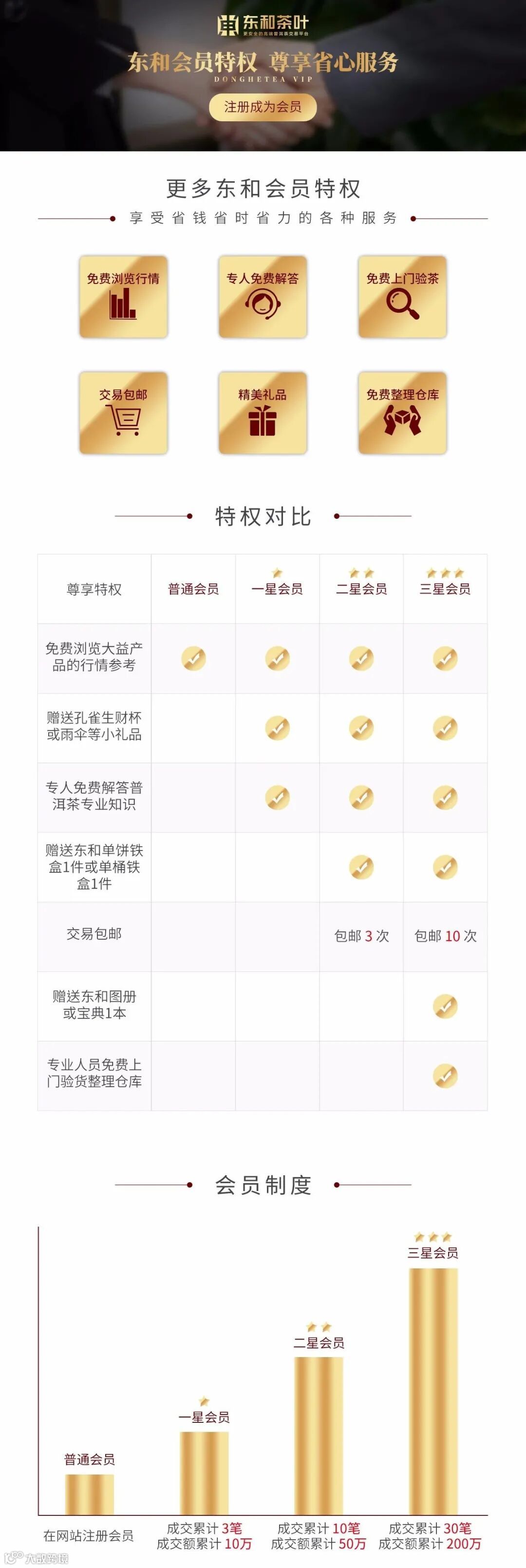 会员制度是东和茶叶长期推出的客户服务计划。注册东和茶叶官网成功的账户并成为会员,享受会员权益。