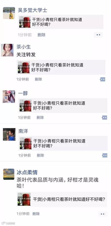 在“干货|小青柑只看茶叶就知道好不好喝?”一文中,我们设置转发朋友圈截图有奖环节,随机抽选五名幸运儿,以下是名单,点击大图看看您有没有中奖。