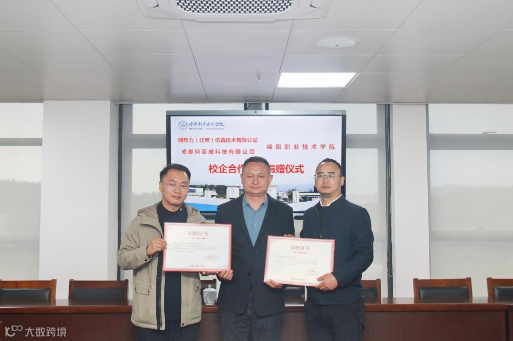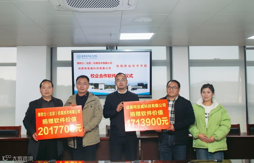 近日,绵阳职业技术学院举行软件捐赠仪式暨校企合作座谈会。博努力(北京)仿真技术有限公司副总经理许加达,成都柯亚威科技有限公司副总经理杨少博、项目部总监杨冬雪,绵职院党委副书记、院长王荣海出席座谈会。党委常委、副院长杨建国主持会议。