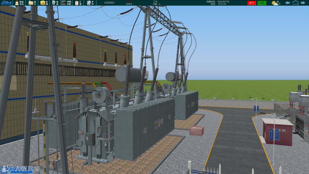 利用三维建模技术、虚拟现实技术及头戴式虚拟现实设备(VR)支持,从视觉、听觉、交互方式和故障处理方面为参培者建立了光伏电场虚拟实境,实现光伏电场场景漫游、虚拟交互、故障处理,激发学员练习热情,提升模拟训练效果。