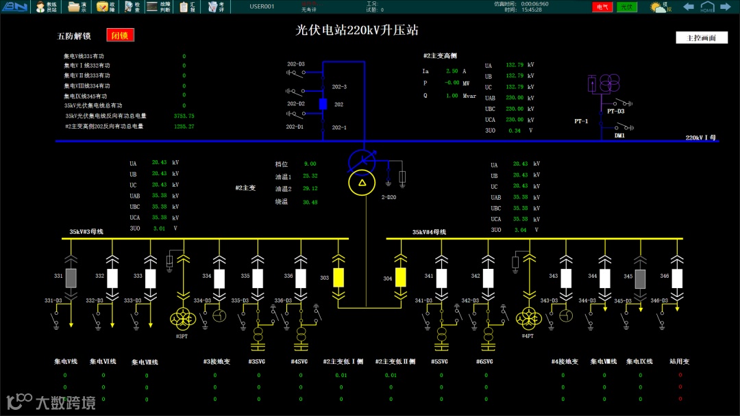 系统全面模拟了光伏电场的综合自动化监控系统和就地操作。