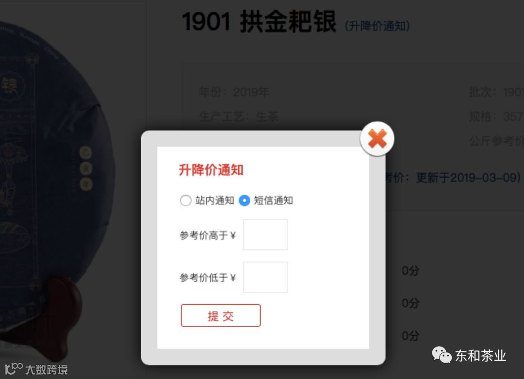 无论是东和茶叶交易价格指数还是浏览数据的公开,我们一直致力于为您打造更省心、更安全的交易平台。在这里重新介绍下我们的“升降价通知”的免费提醒功能使用方式,推荐大家使用,随时把握关注产品的动态,更省心。