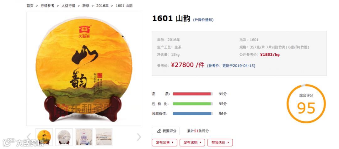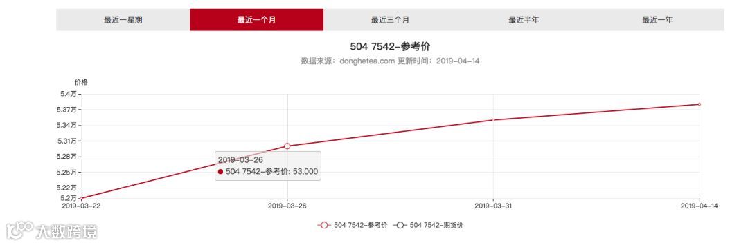 这款产品是大益数字系列中最经典的产品,风险较低,抗跌能力极强,从东和大数据显示,这款产品很值得关注,3月初从4.7万至4月中旬的5.38万元,涨幅高达14.5%。从去年5月底至今涨幅已经达到28%,且平稳的逆势上扬,波澜不惊的走势也让人放心,丝毫不受外界影响,堪称安全级产品,适合长期持有或藏家级茶者。