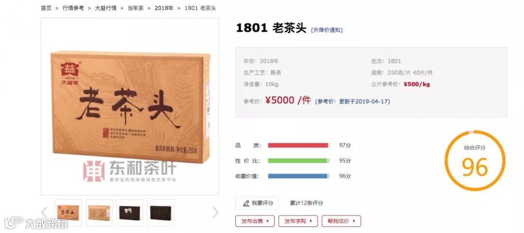 从近一个月的表现来看,老茶头在常见最受关注产品中,不算最抢眼的产品,但表现绝对称得上优秀,3月底还在4200元的价格上徘徊,4月8日冲到顶峰6350元,待4月17日又回落5000元,仍上涨了19%,短短20几天便经历了颇为惊险的过山车走势,也是个魔幻系列!但总体观察,老茶头系列属于稳定有序,1801上市也稍稍带动了整个系列的价格趋涨,而它自己则属于稳扎稳打的走向,大部分投资者倾向于市场泡沫还未破裂,老茶头价值仍被低估的分析,待3-4月这个调整期熬过,相信有霸场能力的产品就会展露头脚,估计老茶头也会占到c位了。