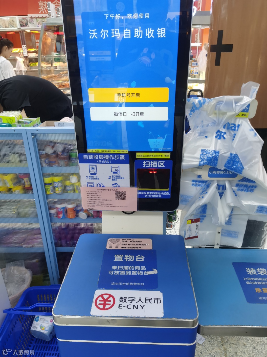 沃尔玛超市的一位工作人员介绍,只要消费者领取到数字人民币红包,就可以通过自助结账机进行付款操作。