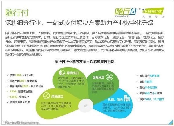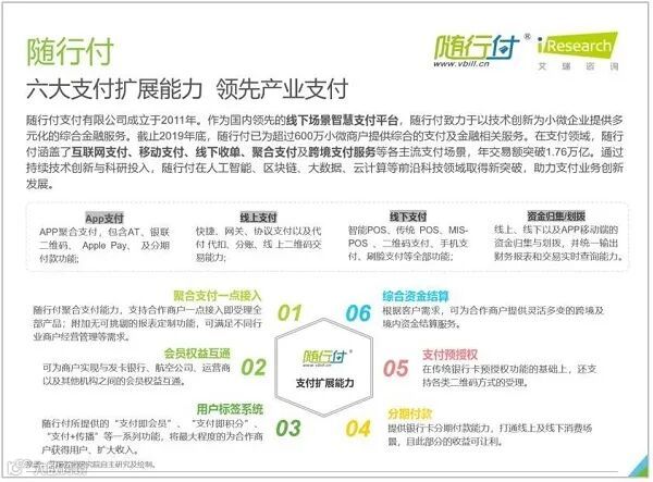 4月7日,艾瑞咨询发布《迈向产业支付时代2020年中国第三方支付行业研究报告》,从第三方支付市场规模发展现状、跨境支付、产业支付、零售支付、物流支付等对第三方支付企业支付宝、随行付、苏宁支付、拉卡拉等典型企业进行深入解读。