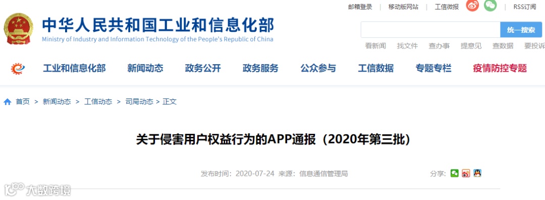 7月24日工信部发布了《关于侵害用户权益行为的APP通报(2020年第三批)》,58款APP被点名。