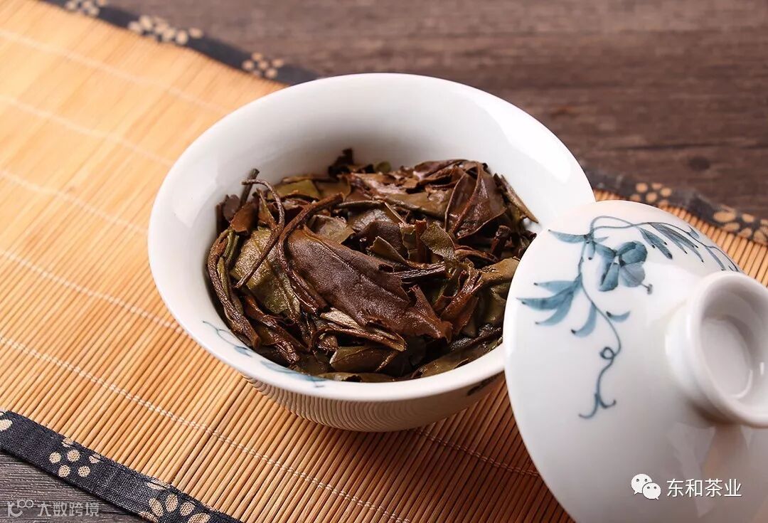 观其叶底,色泽油润,茶叶肥厚,日光萎凋加之三年的陈化使其叶底转向褐色,却依旧带着丝丝青绿。