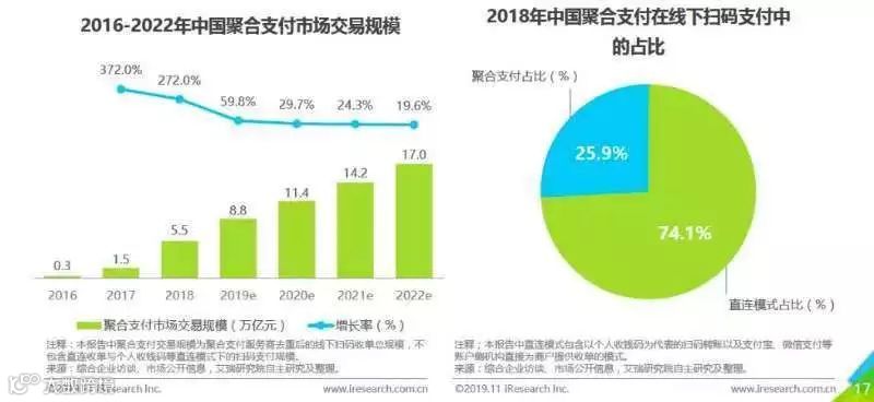 艾瑞咨询发布《2019年中国聚合支付行业研究报告》,报告显示,2019年聚合支付市场交易规模预计达8.8万亿,同比增速59.8%,实现近半数商户覆盖。聚合支付作为消费者、商家、电子钱包之前的桥梁,进一步拉平了各电子钱包受理范围,成为助力支付行业实现互联互通的重要力量。
