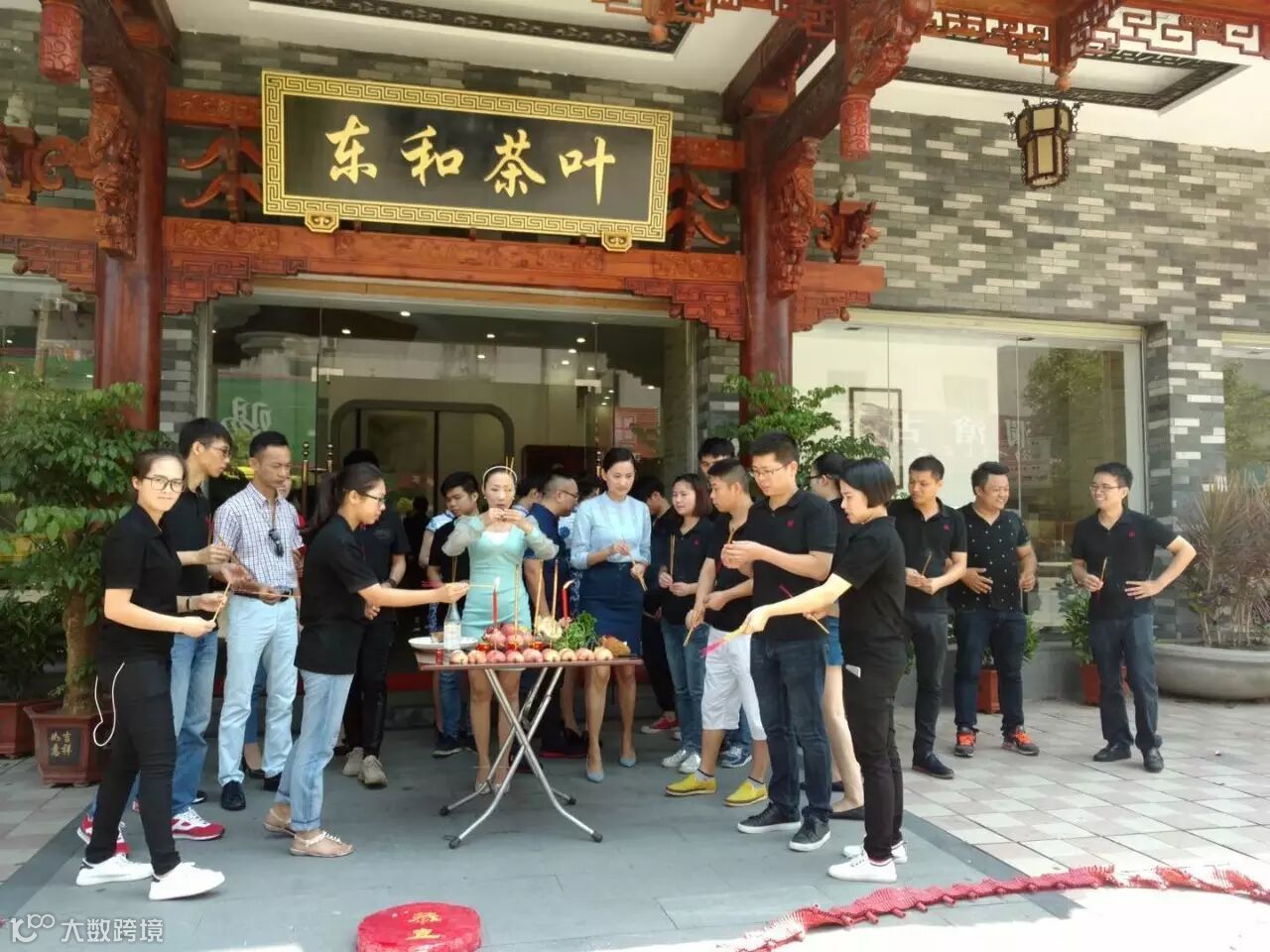为了庆祝东和茶叶第一间分店开业,东和团队集体亮相,现场为东和人敬香,祈求生意兴隆。