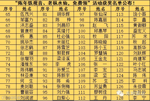 “陈年铁观音、老枞水仙,免费领”活动获奖名单出炉啦!本次活动的幸运儿分别是:
