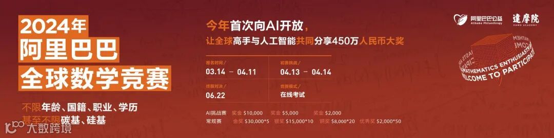 今年的阿里巴巴全球数学竞赛是第六届,报名截止时间是北京时间2024年4月11日 23:59,预选赛时间是北京时间2024年4月13日 8:00 - 4月15日 8:00,决赛时间是北京时间2024年6月22日(周六) 8:00-24:00。