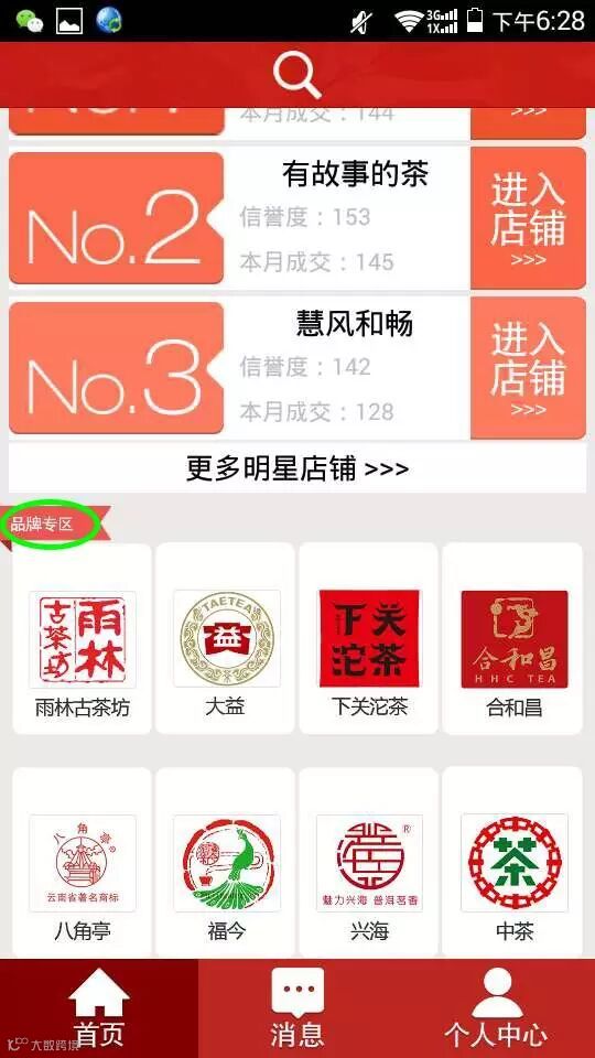 如果您是想直接了解某一个茶叶品牌的信息,只需在【品牌专区】菜单栏处,点击进入您想要了解的品牌区,即可了解相关信息。