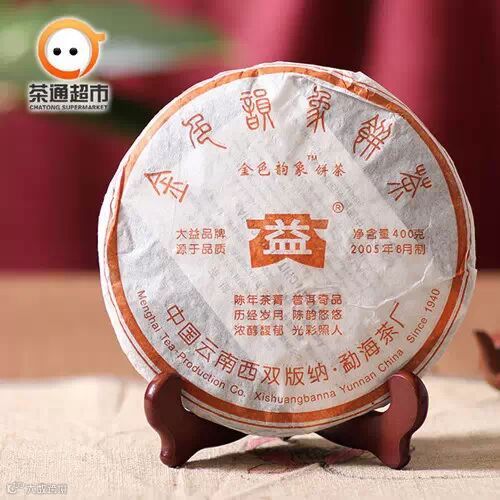 为了庆贺2006年的春节, 勐海大益茶厂于2005年的年尾,特别制作了一批博字绿色包装的“贺岁饼”——【501 金色韵象 绿色版】。“博字印”,是因为2004年博闻投资有限公司全面收购勐海茶厂,或许是以此来纪念吧。