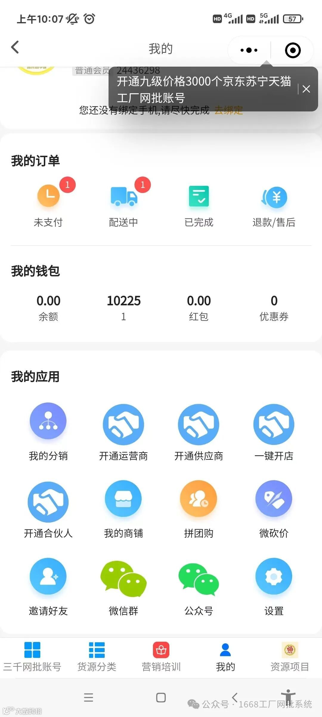 4:开通998京东苏宁天猫工厂16个网批账号大客户采购批发账号京东令牌账号京东超体账号客户均可免费升级网批平台合伙人代理商.更低采购价格和邀请注册采购批发返利分成.
