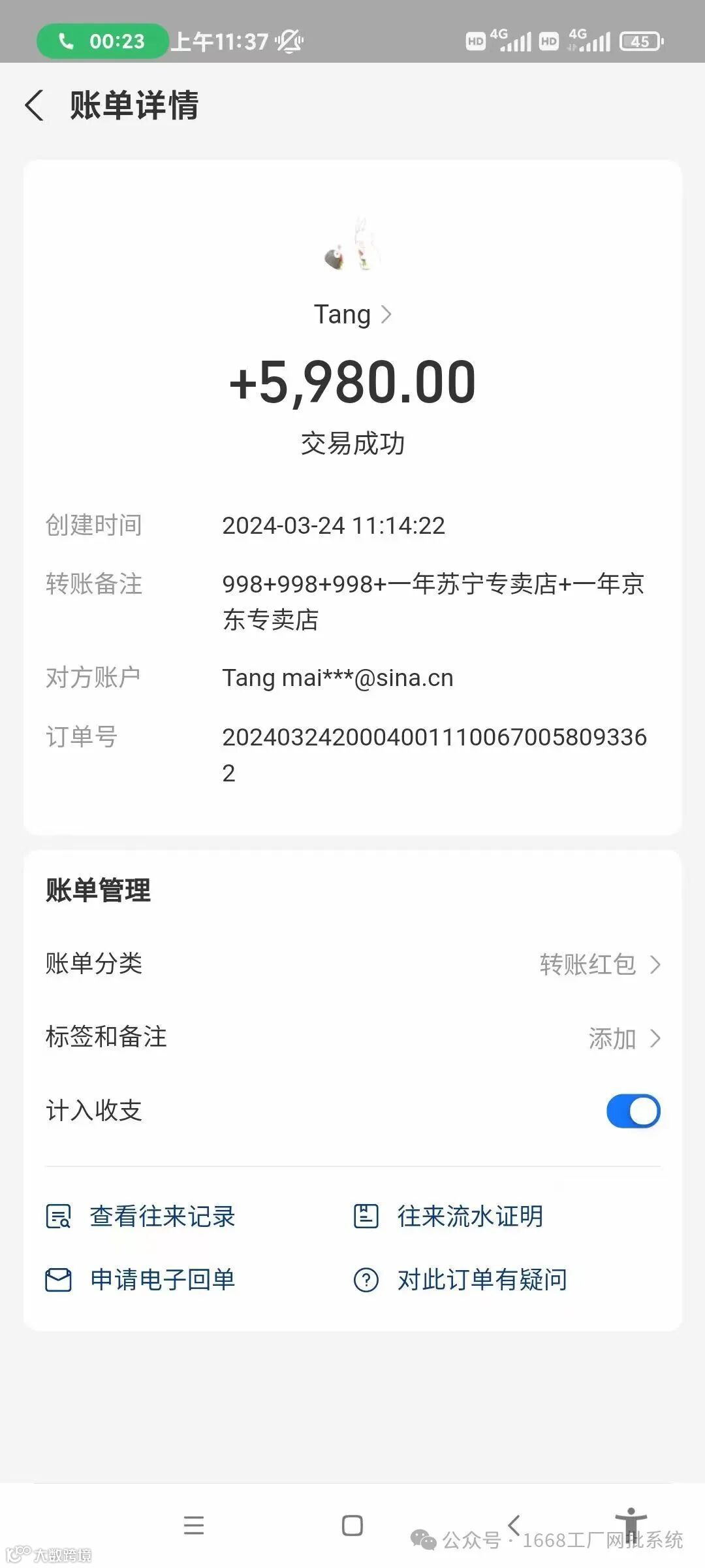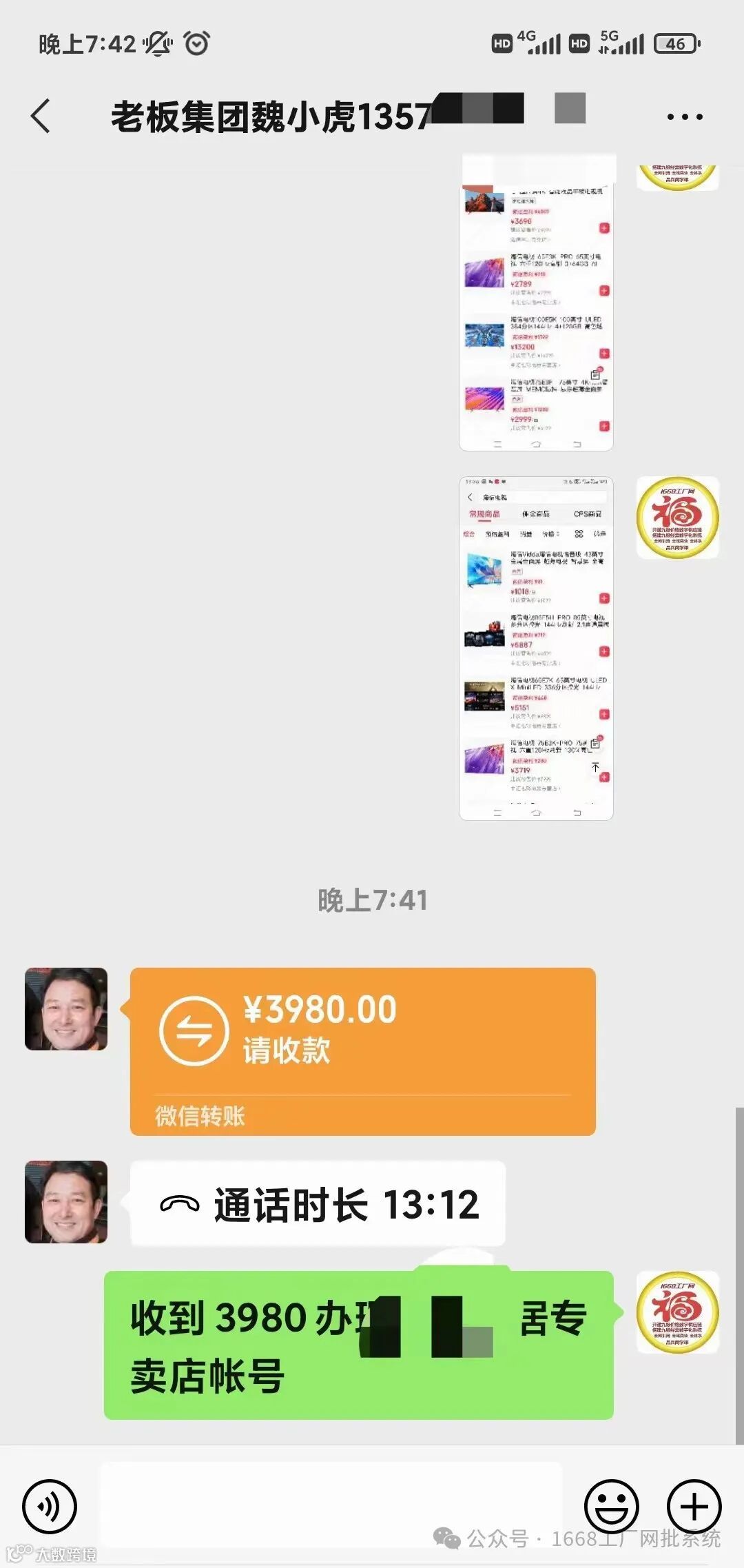 又收1980开通苏宁专卖店全国大批帐号,合计收款10660元开通京东苏宁天猫工厂网批帐号,专卖店帐号,工厂集采供应链帐号。收4980办理京东,苏宁,天猫三个专卖店帐号一套+专卖店集采线报。