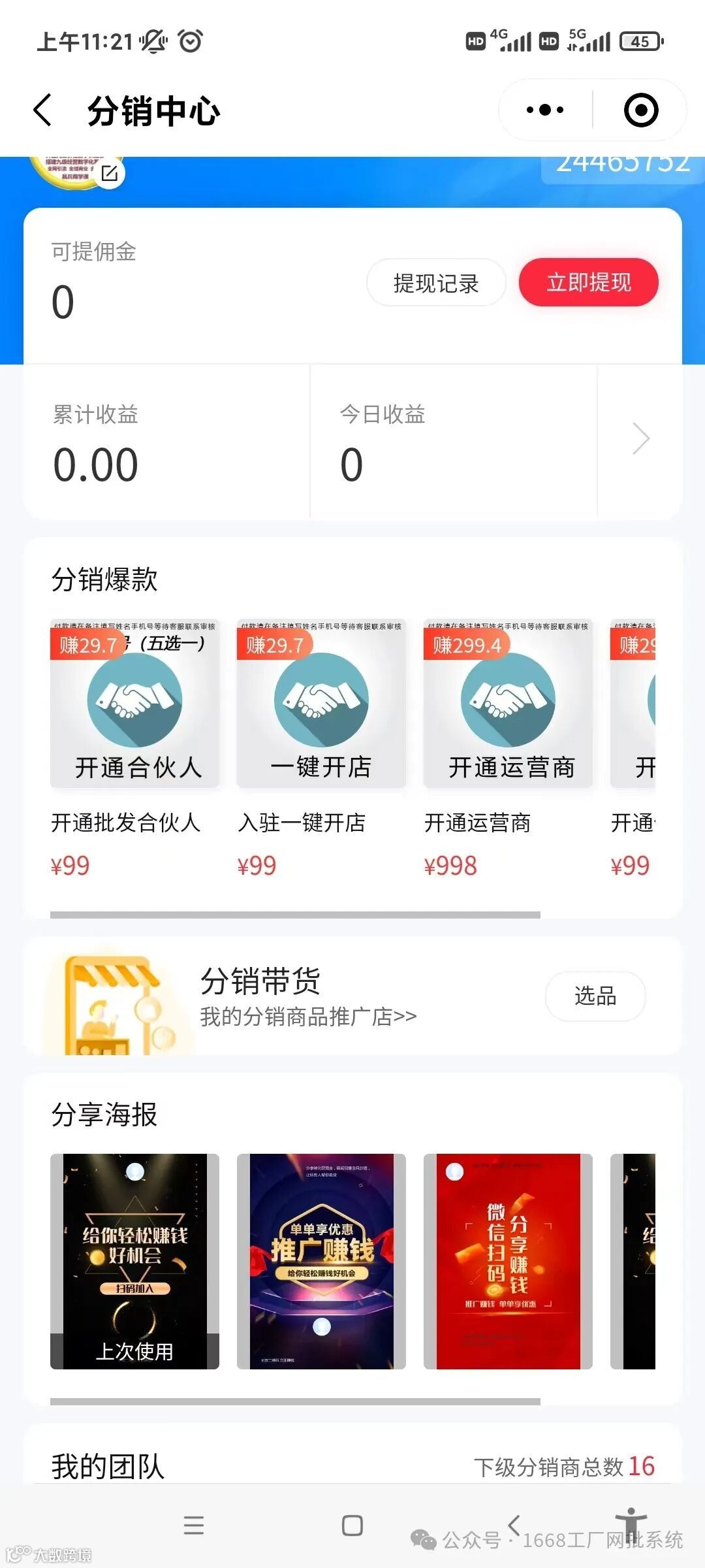 1668工厂网3000网批账号资源全国员工,分部,联创,共创,阿米巴,合伙人,运营商,代理商后台系统注册与代理邀请分销系统教程!