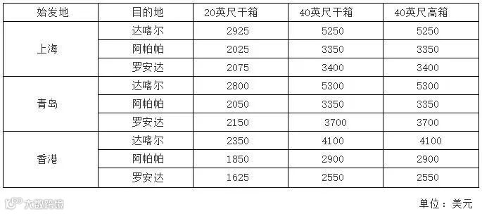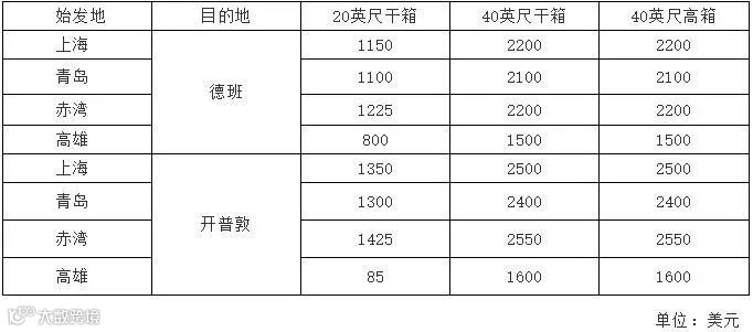 从11月1日起,马士基还将继续收取远东部分港口至南非市场的FAK。具体如下(单位:美元)
