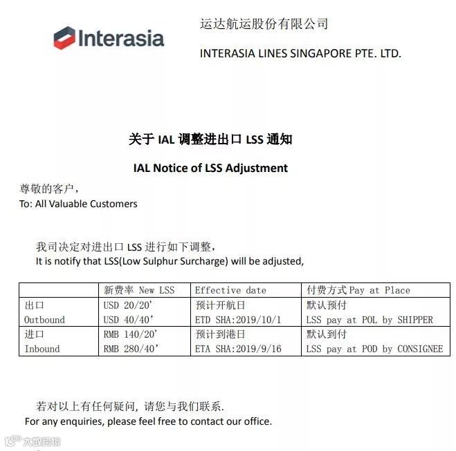 从11月1日起,继续收取东亚至南美东海岸GRI,具体标准为600美元/箱,收取东亚至印度次大陆GRI,标准为200美元/TEU,适用于所有货物和箱型。