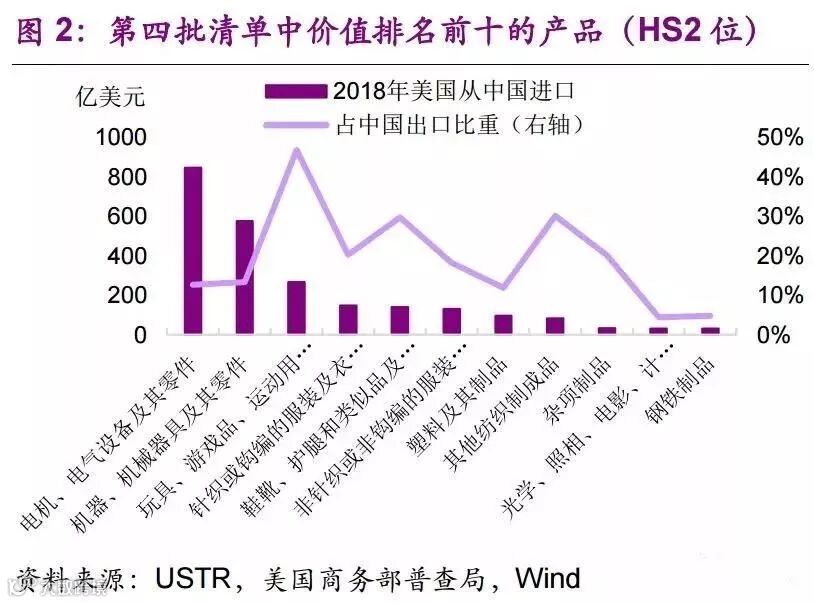 具体来看,第四批征税清单集中了大量的消费品,其中排名第一的是电机、电气设备及其零件。