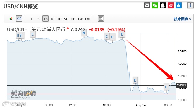 离岸人民币兑美元一度升破7.0关口,日内涨超1000个基点。
