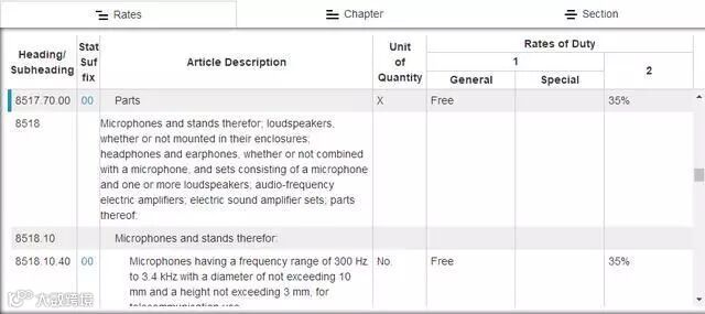 进入网站以后,在Tariff Assistance项下Search the current Harmonized Tariff Schedule...下的搜索框中输入产品的海关编码(HS CODE)。美国的HTS和我们的海关编码作用是一样的,而且前6位也是一致的。比如,我们输入手机的海关编码(HS CODE)的前6位851770,点击Go。