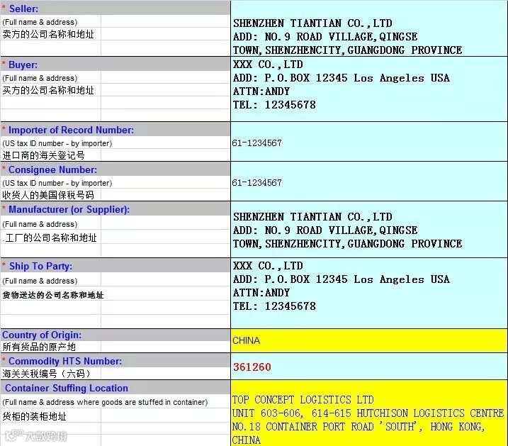 ▲ISF申报模板,仅供参考,以船公司要求为准