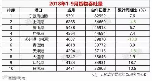 日前,交通运输部公布了2018年9月规模以上港口货物吞吐量快报。