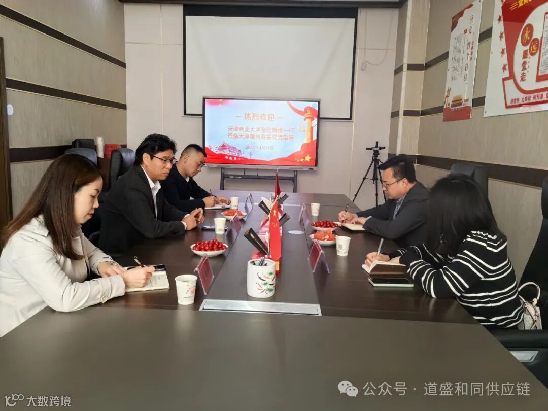 4月11日下午,天津商业大学教授张阳,物流管理系主任高妮妮到访道盛和同公司,受到公司董事长曾松青、物流经理曾梅梅的热情接待。