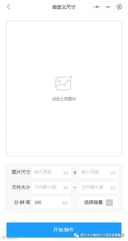 第二步:在制作证件照页面选择需要制作的证件照尺寸,并选择相对应的证件照背景底色之后即可选择