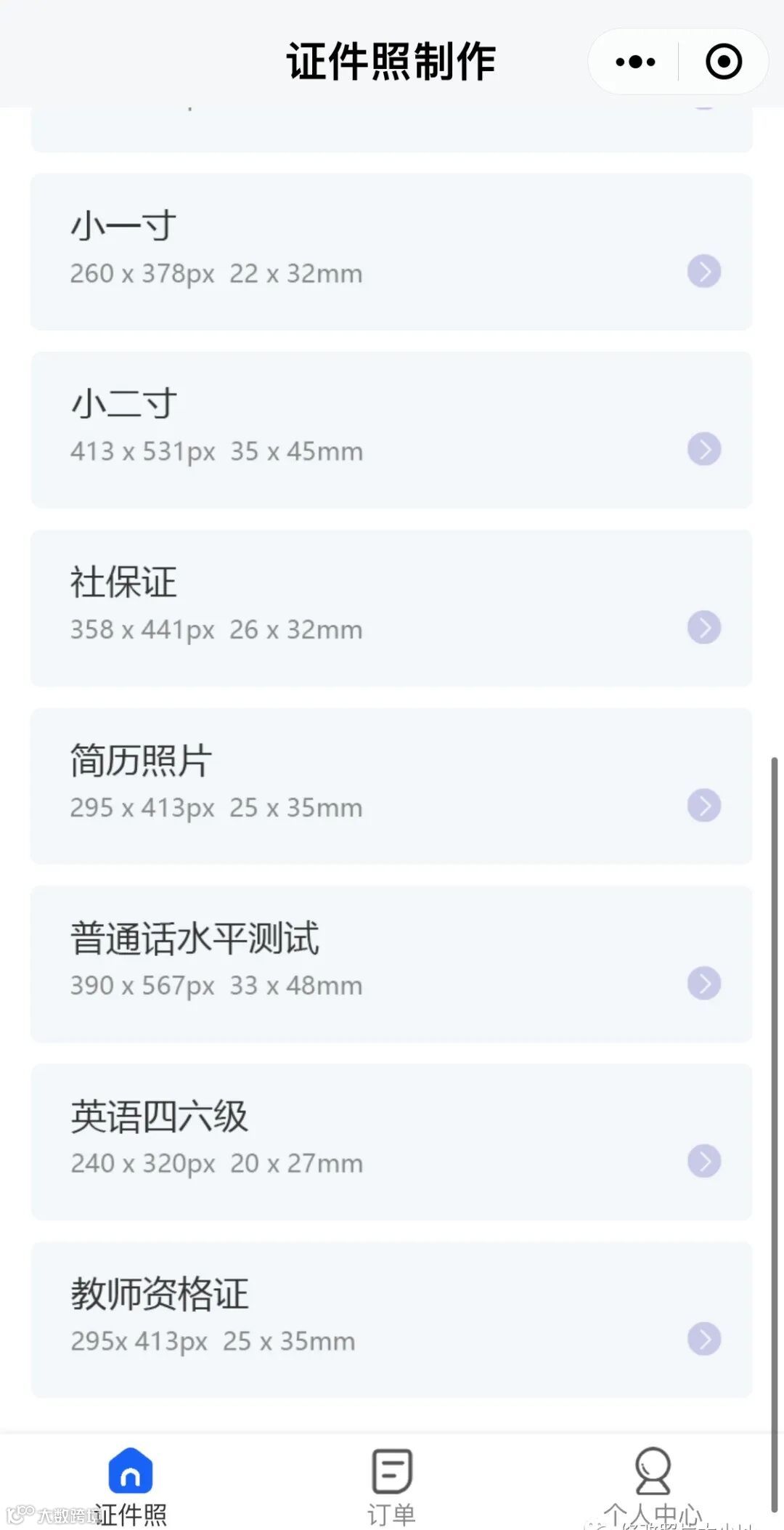如上图:简历照片、社保照片、普通话照片、驾驶证、教师资格证、护士证、签证、高考报名、计算机、结婚证、成人自考等证件照片供您选择。